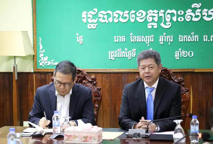 西哈努克省中國(guó)商會(huì)陳堅(jiān)剛會(huì)長(zhǎng)拜訪(fǎng)郭宗仁省長(zhǎng)并進(jìn)行友好交談