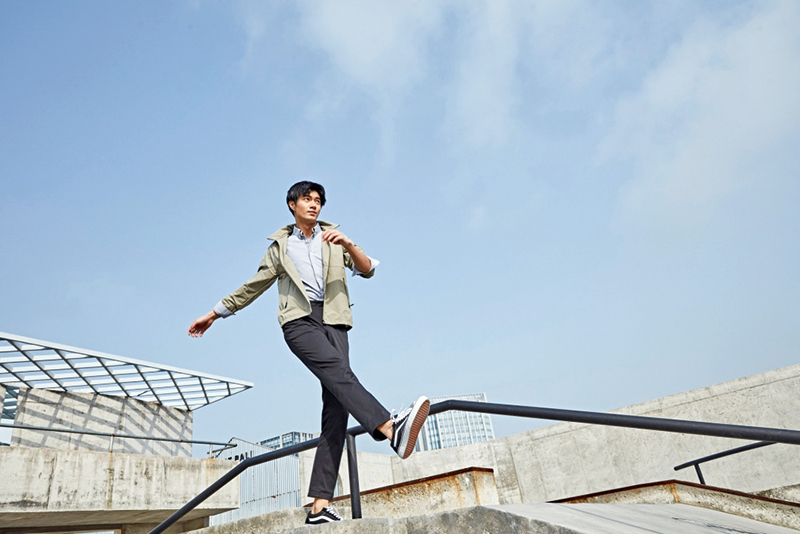 戶外運動,盡享自由活力。搭配建議:休閑襯衫+錐形版工裝褲+衛(wèi)衣。運動系男生的福音來啦!紅豆舒彈休閑褲也是戶外運動的必備單品,錐形版工裝褲款式簡約、舒彈輕松,讓我們在運動中盡情享受自由,釋放活力。墨綠色襯衫疊穿白色衛(wèi)衣,袖口外翻打造松垮舒適的休閑隨性感,白色運動鞋搭配同色系條紋運動襪與上半身呼應,而帽子、手表、背包等配飾的加入與整體造型的時尚運動風相得益彰。